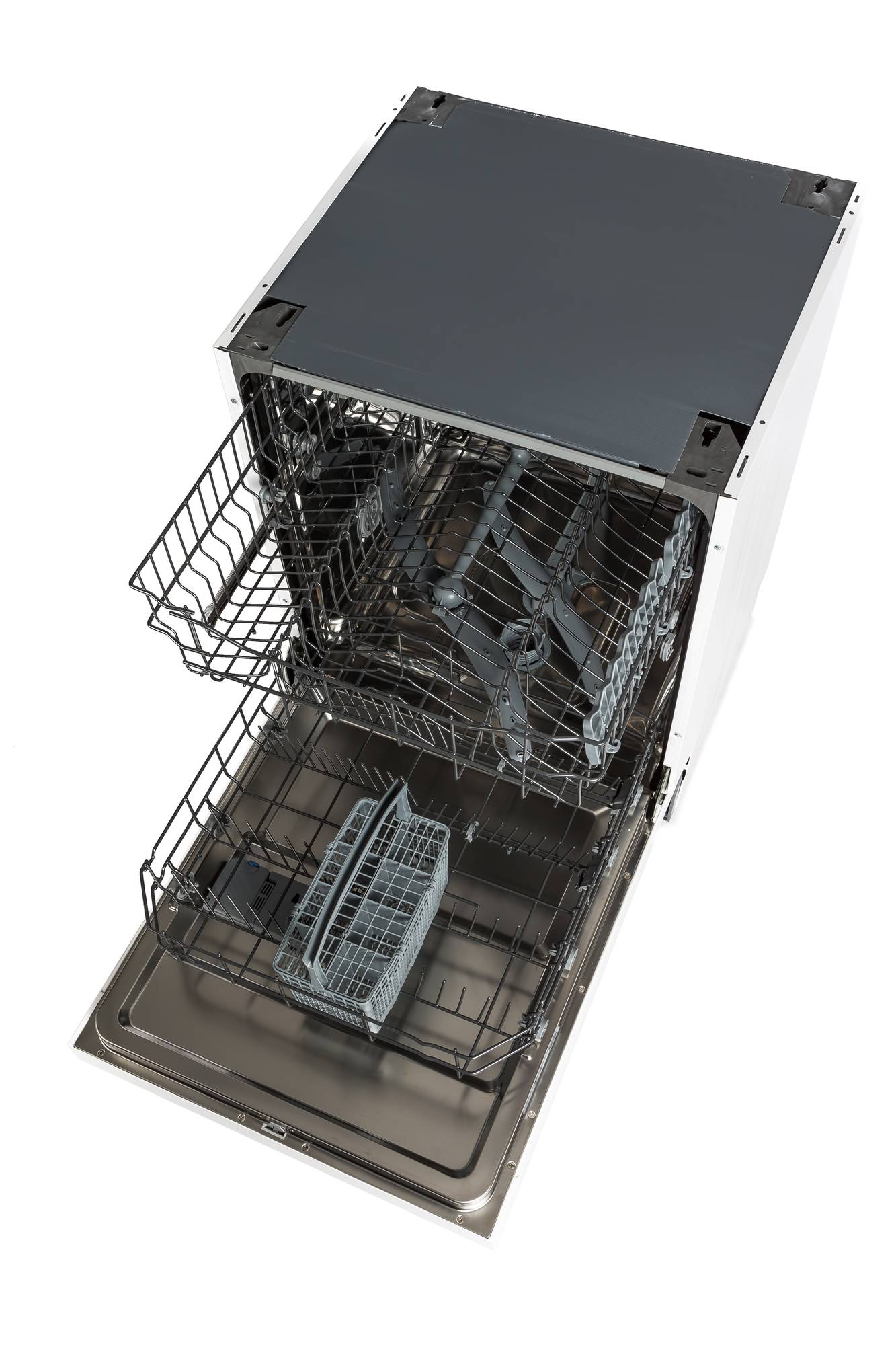 Laitteen kahteen koriin saa mahtumaan jopa 12 hengen astiat. Yläkorin korkeutta pystyy säätämään ja mukana on kätevät mukitelineet. Alakorista löytyy tilava ruokailuvälinekori. Vedenottoletku on varustettu aqua-stop letkulla. Laitteen korkeus on säätöjaloilla säädettävissä 82-87cm korkeudelle. Laitteessa on säädettävä sokkeli ja se sopii kalusteasennuksiin.