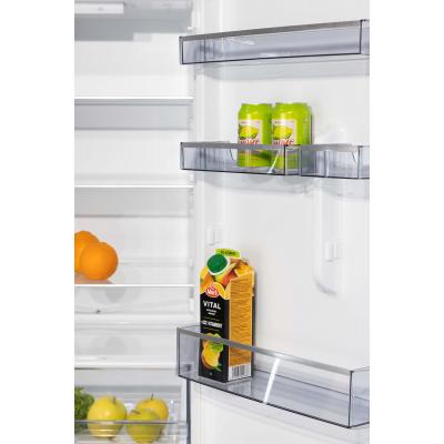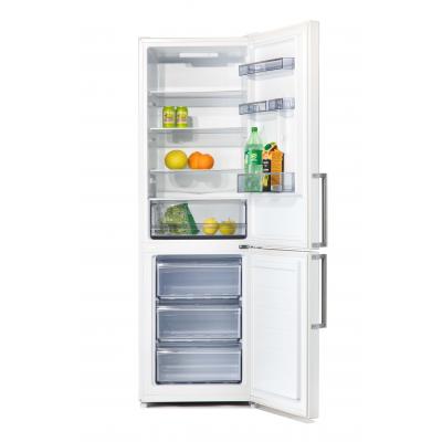 Elektronisella ohjauksella varustettu 60 cm leveä jääkaappipakastin, jossa on tilava vihanneslaatikko.