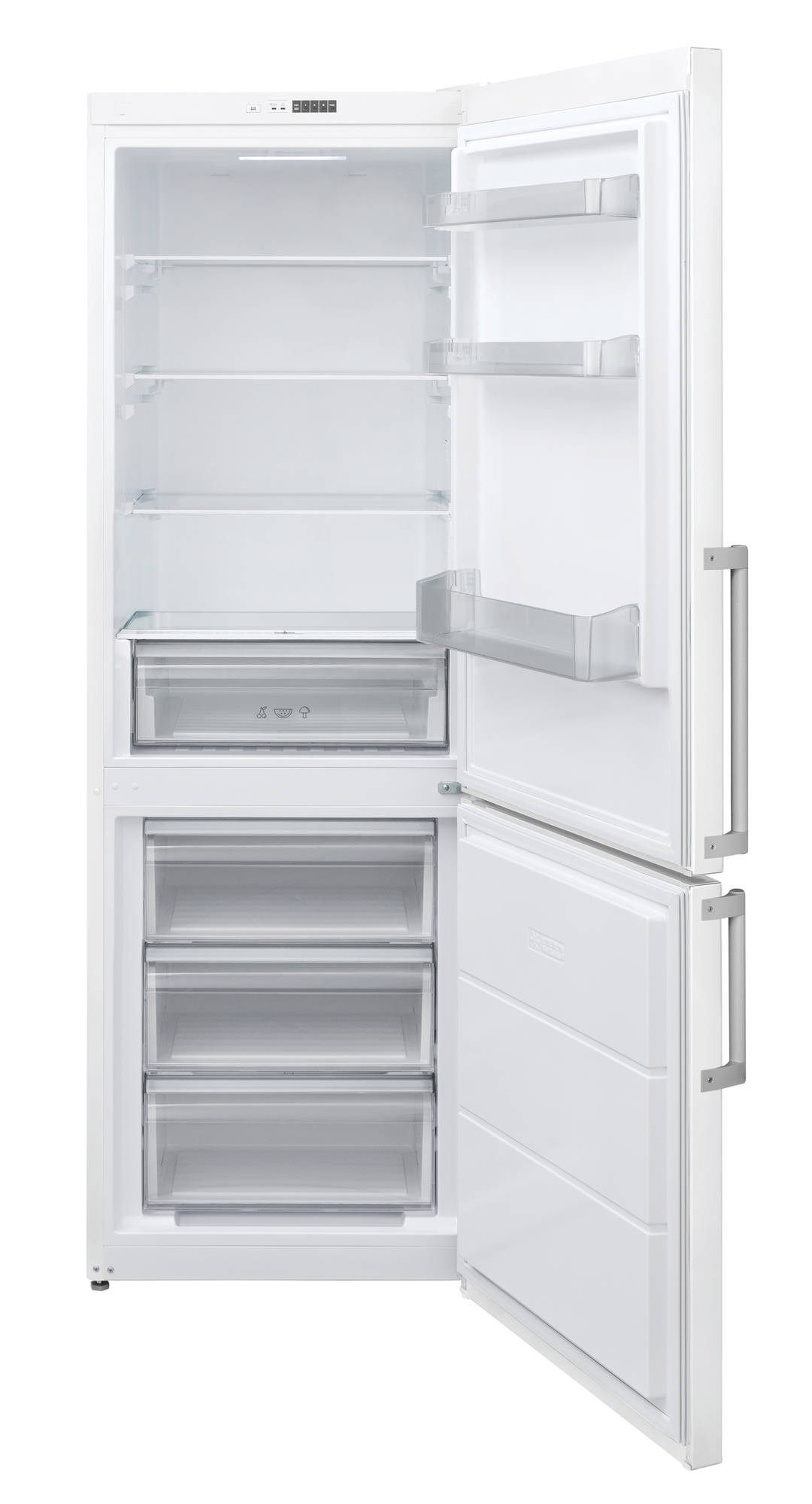 60 cm leveä jää/pakastinkaappi, jonka korkeus on 186 cm. Laite on varustettu elektronisella termostaatilla, ja lasihyllyillä varustetussa pakastimessa on ns. ”vähemmän huurretta” rakenne, jonka ansiosta pakastinta ei tarvitse sulattaa yhtä usein kuin perinteistä pakastinta. Laitteen takana olevat pyörät helpottavat laitteen siirtämistä. Jääkaappi on varustettu turvalasihyllyillä, tilavilla ovilokeroilla sekä vihanneslaatikolla. Ovissa on tukevat metalliset kahvat. Laite on varustettu pitkällä 250 cm liitäntäjohdolla. Lauhdutin sijaitsee laitteen takaseinässä. Energialuokka F.