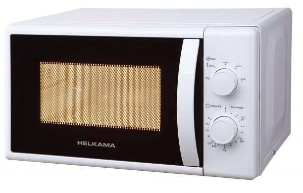 Valkoinen mekaaninen perustoiminen mikroaaltouuni, jossa on suomenkielinen käyttöpaneeli. Mikrossa on oven avausta helpottava kahva. Viisi erilaista tehoaluetta kuten sulatustoiminto. Mikro on teholtaan 800W ja tilavuudeltaan 20 litraa.