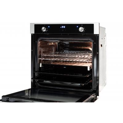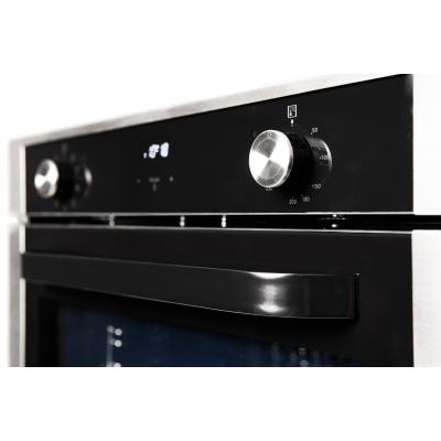 Tyylikäs kalusteuuni, väriltään musta/teräs, jossa monitoimiuuni, aidolla kiertoilmatoiminnolla. Luukku on 3-kertainen lämpölasi, ja varustettu tyylikkäällä mustalla kahvalla. Uunissa kello/ajastin. Varusteina teleskooppikiskot, 2 matalaa peltiä, 1 syvä pelti ja 2 ritilää. Energialuokka A.